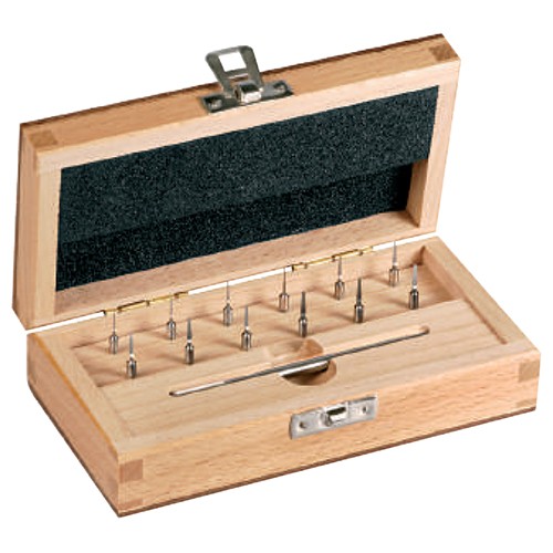 Ассортимент из 12 конусообразных твердых металлических разверток для отделки отверстий.