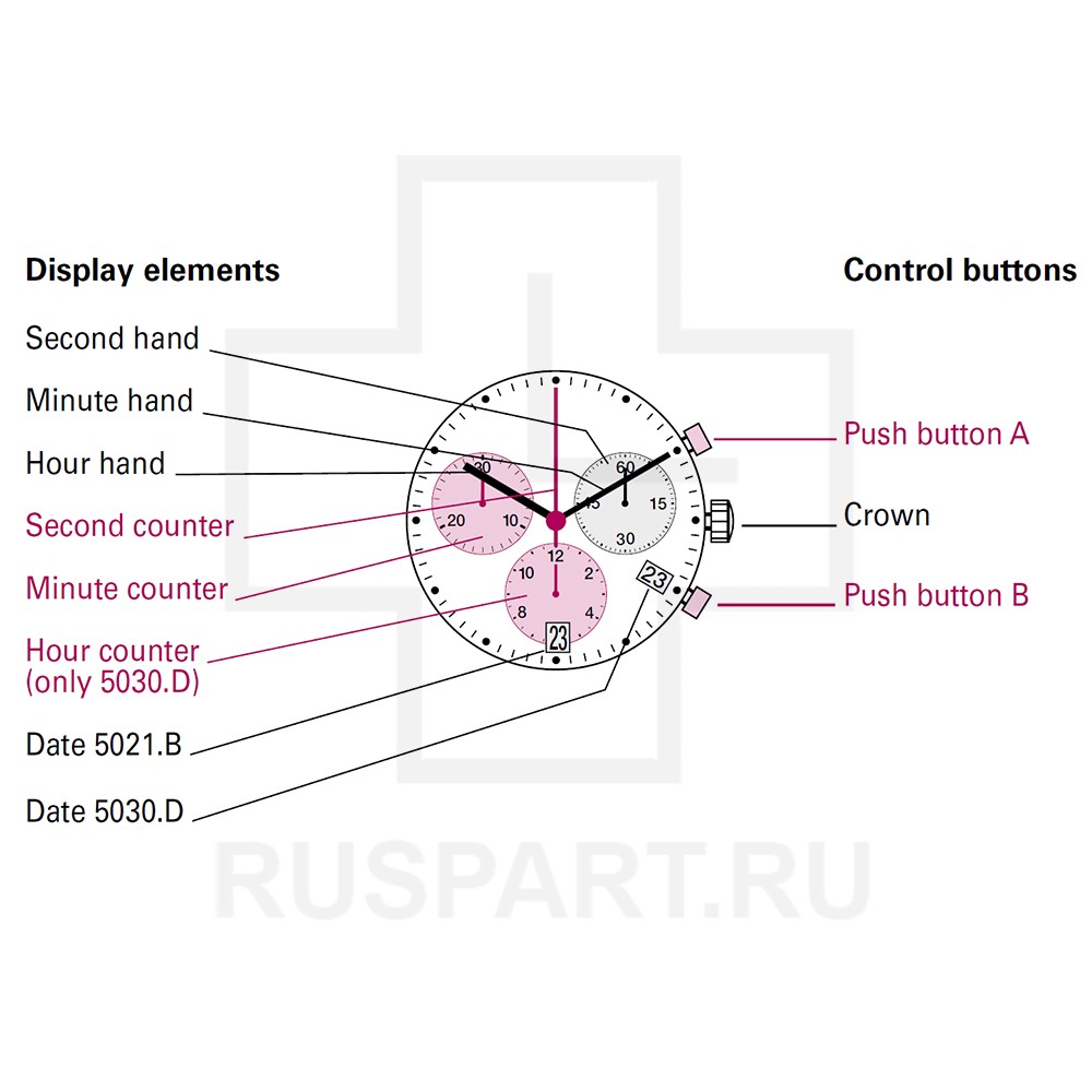 Механизм часовой в сборе RONDA 5021 HH1 D6