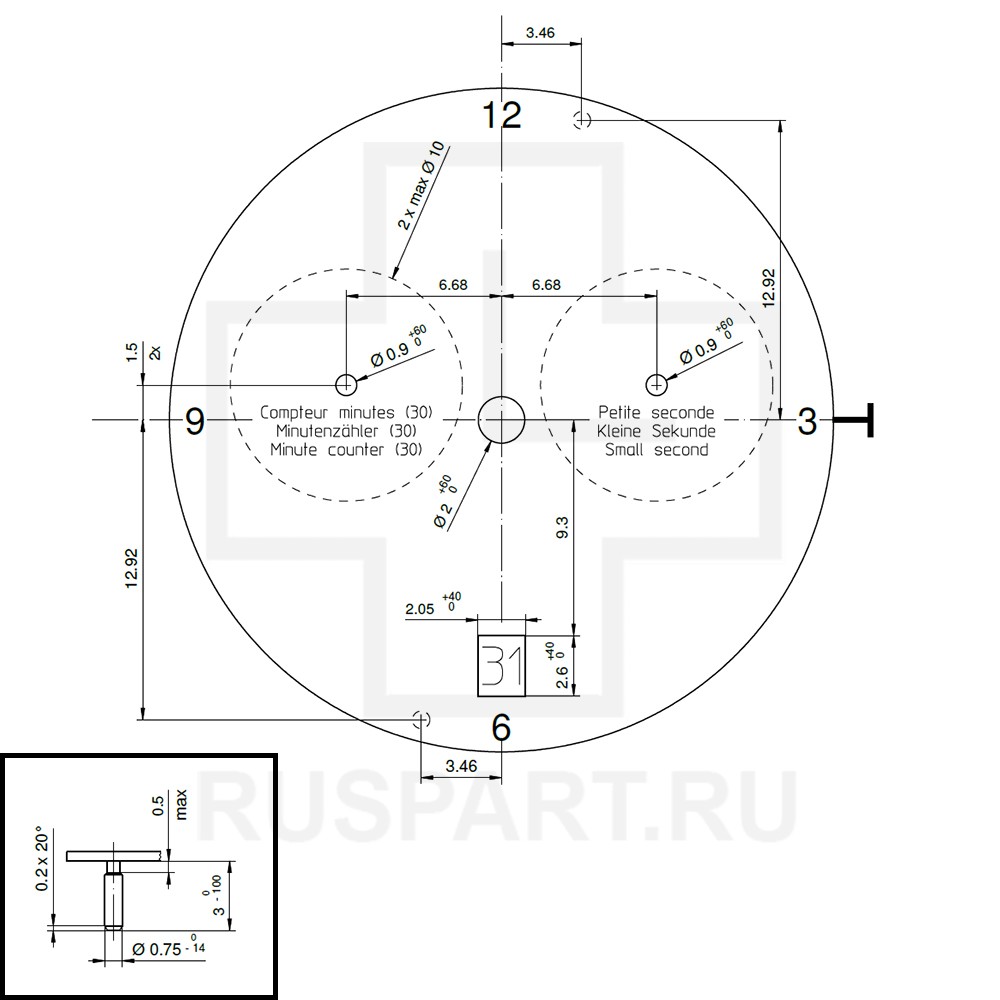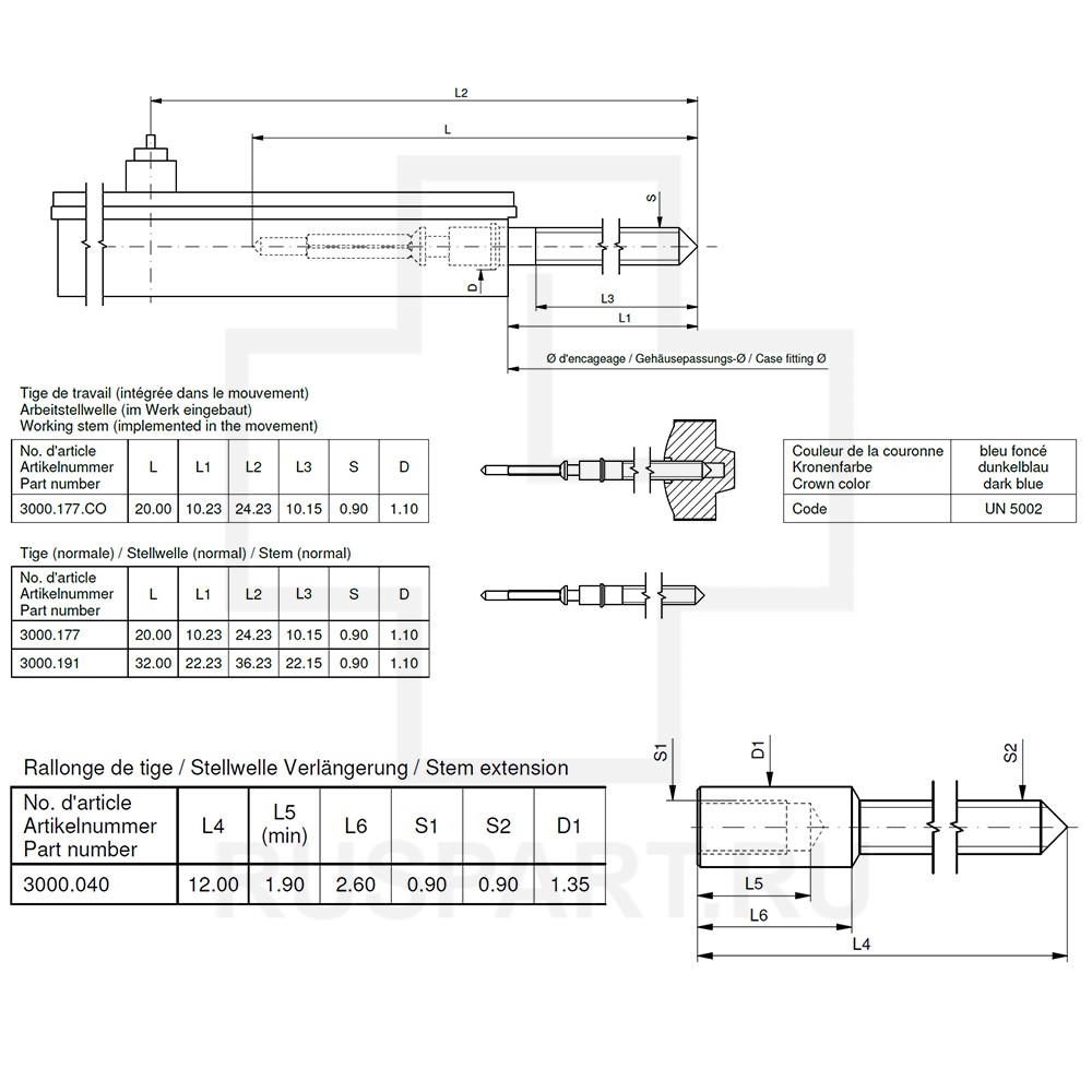 Переводной вал RONDA 4002.BОписание: 0.90 mm, 20 мм.