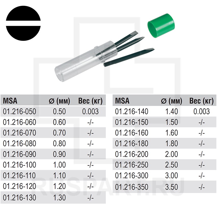 Пластиковый тубус с 3 сменными жалами из закаленной стали для часовых отверток MSA 01.201-xxx