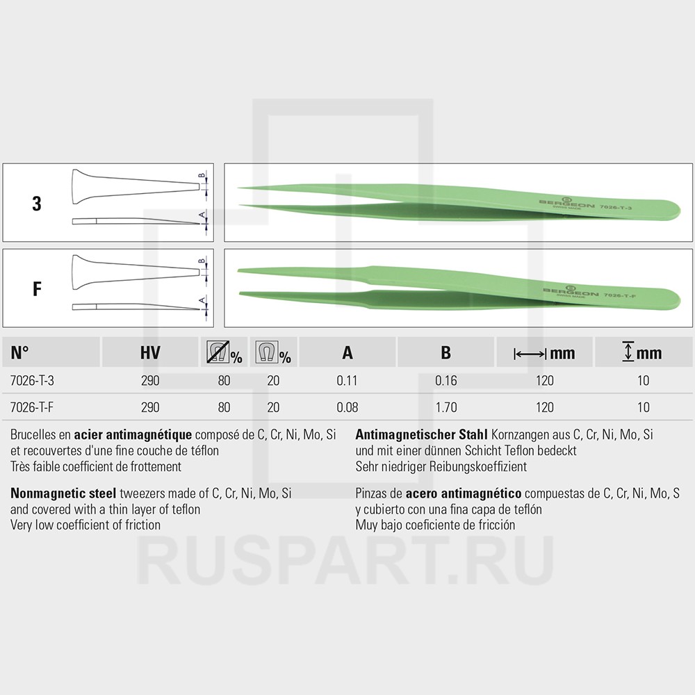 Пинцет антимагнитный BERGEON Тип T-F