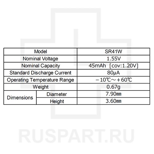 Батарейка кнопочная, оксид серебра SEIKO SR41WОписание: Original SEIKO
