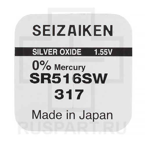 Батарейка кнопочная, оксид серебра Seizaiken SR516SW