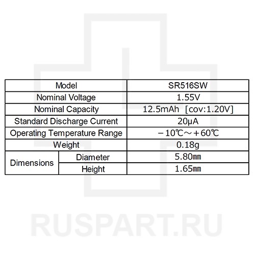 Батарейка кнопочная, оксид серебра RENATA SR516SWОписание: упаковка 10 шт