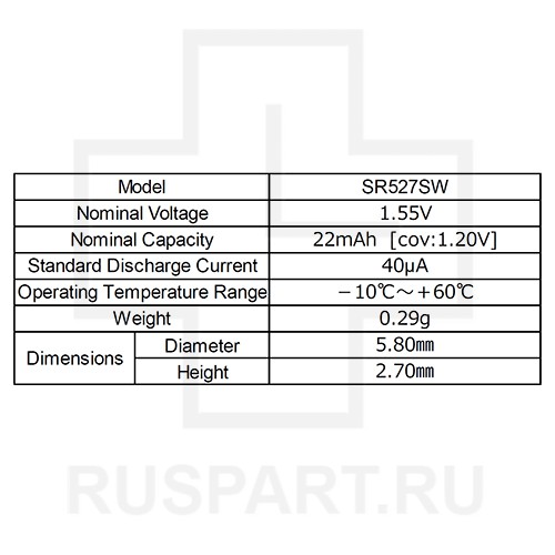 Батарейка кнопочная, оксид серебра SEIKO SR527SWОписание: Original SEIKO