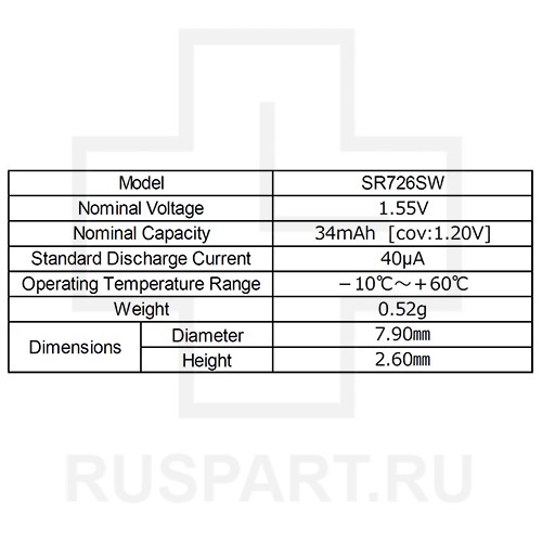 Батарейка кнопочная, оксид серебра RENATA SR726SWОписание: упаковка 10 шт