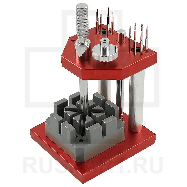 С помощью данного потанса можно простым нажатием снять или установить штифты и винты браслета. Вертикальная направляющая позволяет идеально подстроиться под винты и штифты. Все насадки легко доступны, расположены на верхней части потанса.