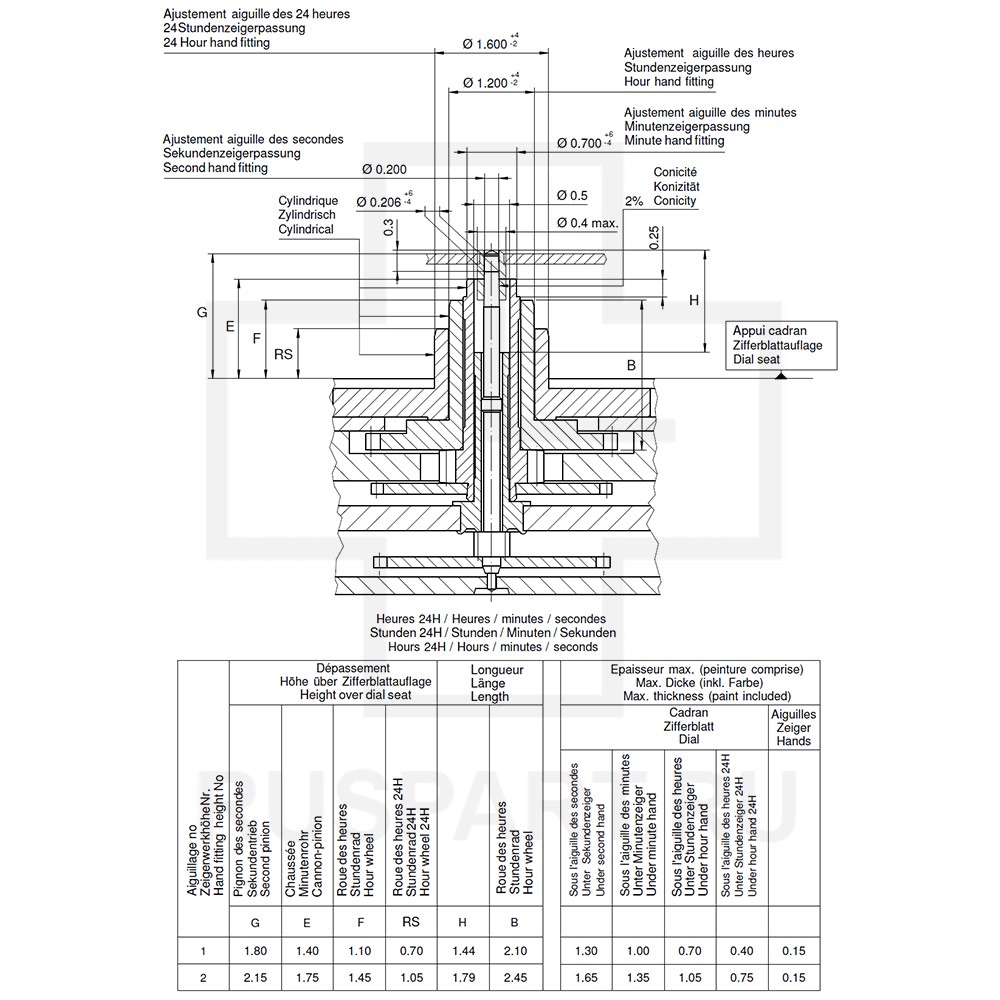 MOVEMENT RONDA 515.24D, SIZE 11 1/2''', 4 HANDS, AIG2, HH2 (HAND FITTING HEIGHT No 2), DATE AT 6, 24 HOUR DISC. AT 12
