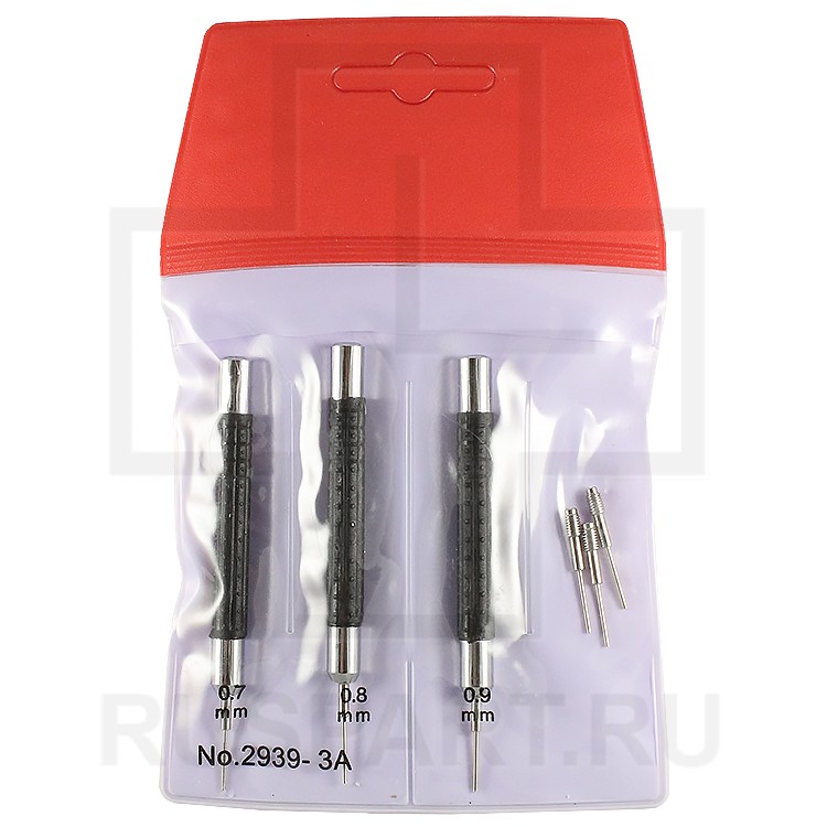 Набор выбивателей звеньев HOROTEC MSA10.508Описание: 3 шт ASSORTMENT OF PIN PUNCHES TOOLS FOR REMOVING THE BRACELET PINS, 3 PIECES (O 0.60 - 0.80 - 1.00 mm)