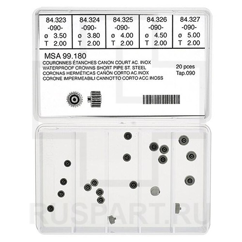 4x MSA84.323-090 /.324-090 /.325-090 /.326-090 /.327-090 ASSORTMENT OF WATERPROOF CROWNS SHORT PIPE, STAINLESS STEEL / STEEL