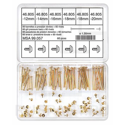 20x MSA46.805-18 ASSORTMENT OF PRESSURE BARS, STAINLESS STEEL / GILT, 1.30 mm / 60 PIECES