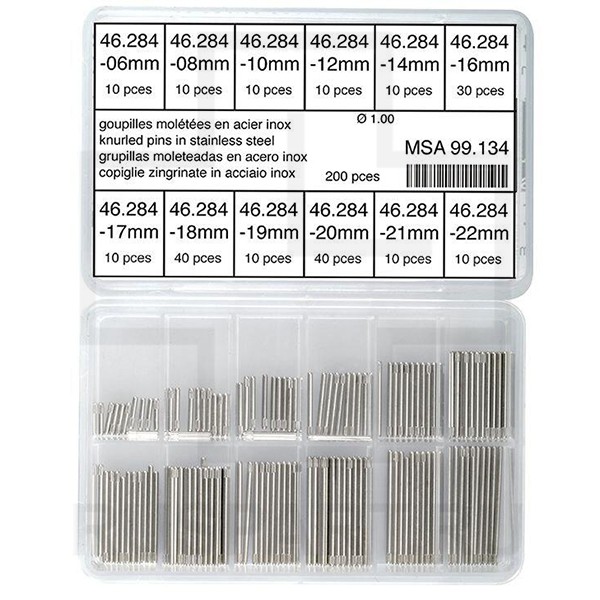 40x MSA46.284-18 /-20 ASSORTMENT OF KNURLED PINS, STAINLESS STEEL / 1.00 mm / 200 PIECES