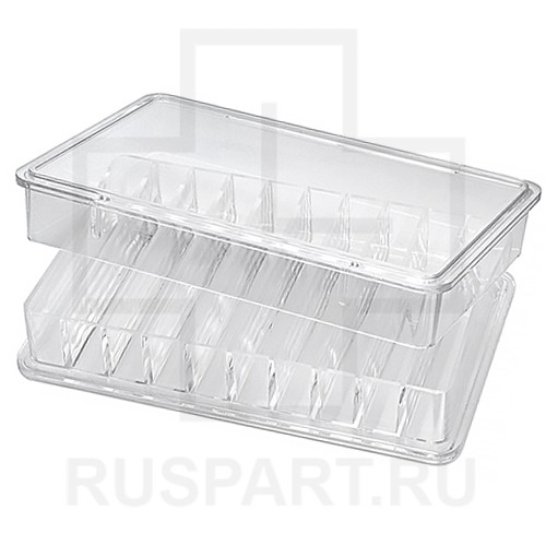 10 отделений (46x6x6 мм), прозрачное основание с крышкой / снаружи 84 х 54 х 16 мм
