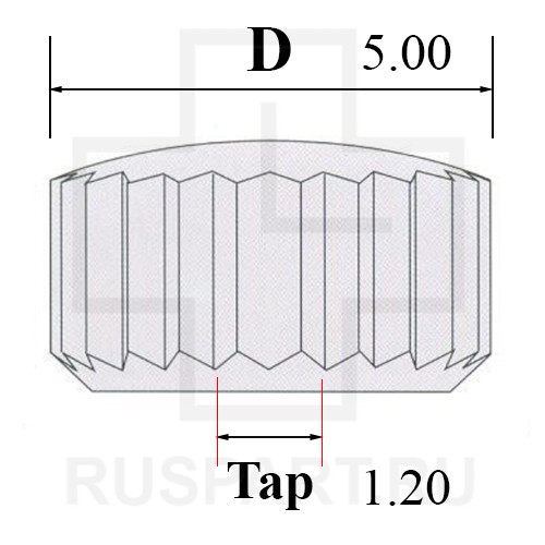 размер головки: d=5,00 высота H= 2,7 вал= 1,2