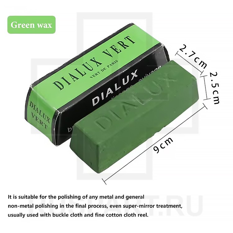 Полировальная паста DIALUX GREEN для использования с щетками и дисками из хлопка, войлока или фланели.