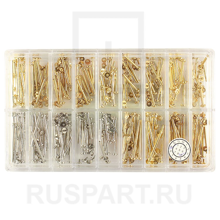 и 50 шт. стальных штифтов: 12, 14, 16, 18, 20 мм. - по 10 шт. каждого размера.