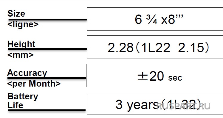 Механизм часовой в сборе MIYOTA 6L32Описание: 6 3/4 x8 h: 2,55 SR621SW
