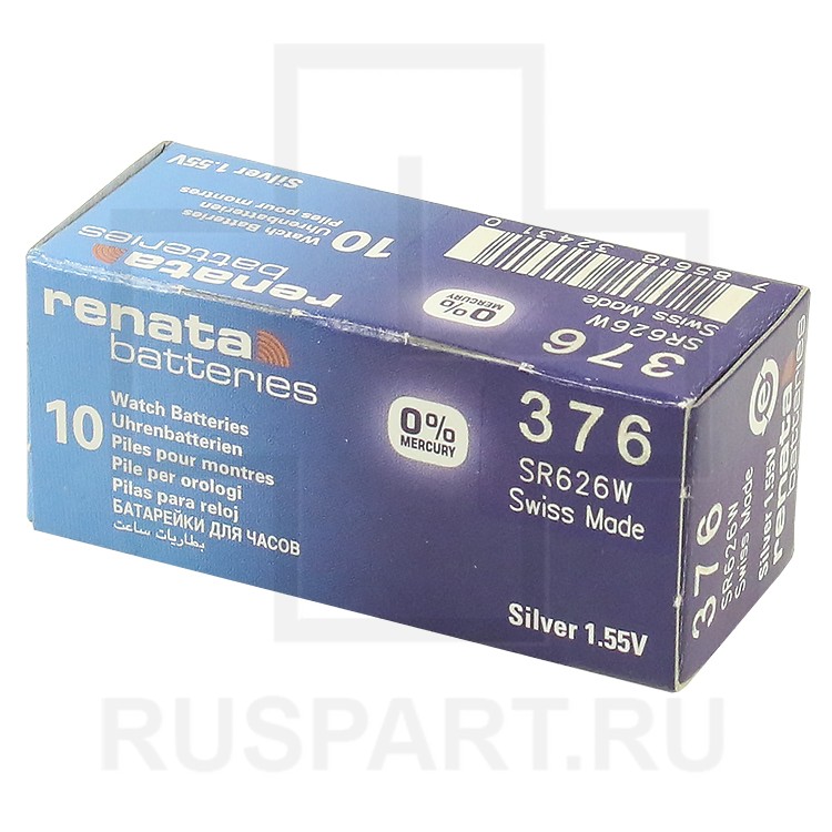 Батарейка кнопочная, оксид серебра RENATA SR626WОписание: упаковка 10 шт на блистере