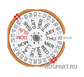 Механизм часовой в сборе MIYOTA GM00GОписание: MOVEMENT MIYOTA GM00G, SIZE 10 1/2''', 3 HANDS, GILT, STANDARD HAND HEIGHT, DATE AT 6 DAY AT 6