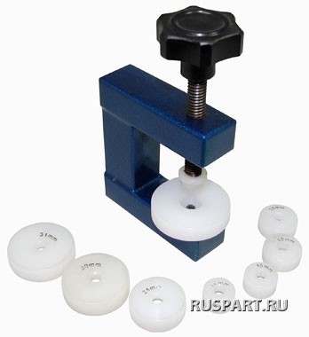 Мини-пресс для закрывания часов HOROTEC PERFPP01Описание: В комплект входит: 8шт фторопластовых дисков для закрывания задних Размеры насадок: 14-37 мм