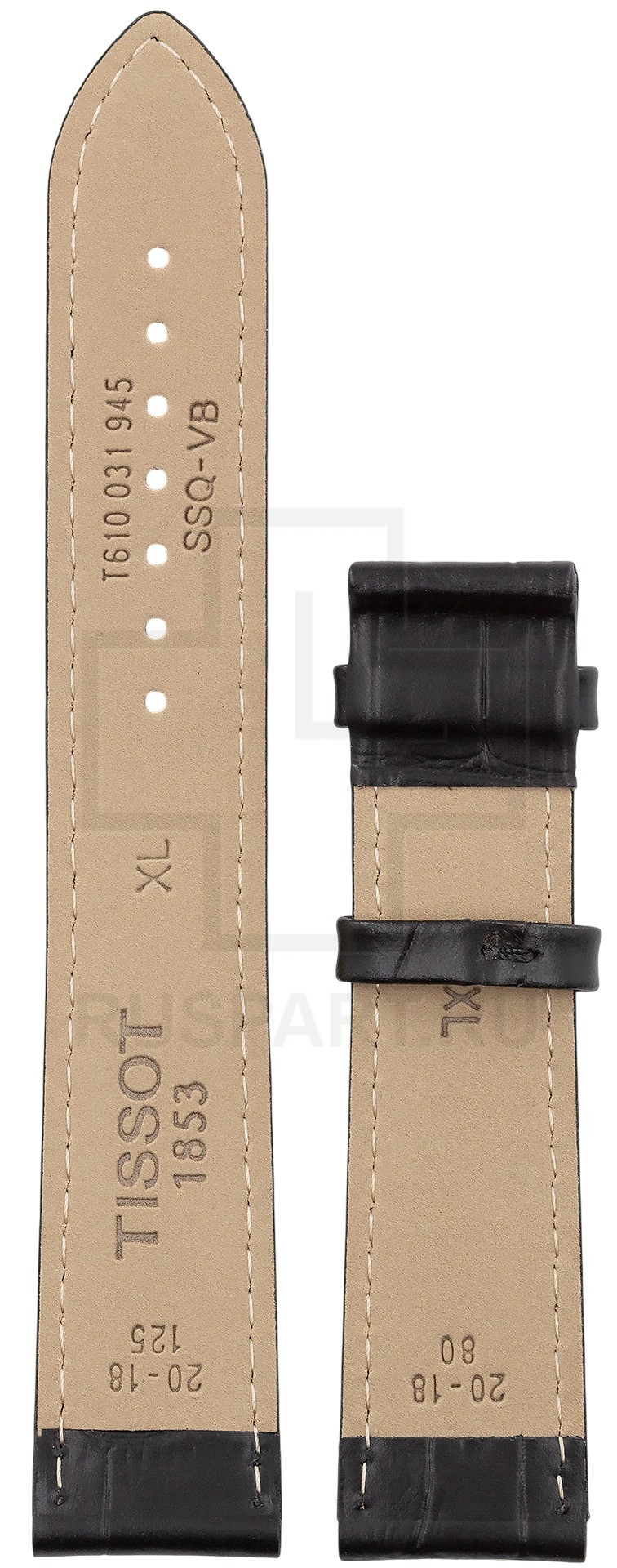Ремешок черный. XL, имитация крокодила, 20/18, без замка, TRADITION (T063.610, T063.637, T063.639)