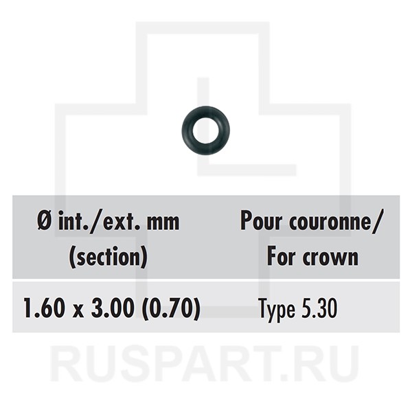 ROUND GASKET FOR SCREW-ON TUBES OF CROWNS 5.30 TYPE, INT. 1.60 x EXT. 3.00 mm