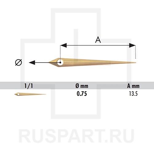 МИНУТНАЯ СТРЕЛКА В ВИДЕ КИНЖАЛА ДЛЯ СТАРЫХ ЧАСОВ, РОЗОВАЯ / 0,75 x L13,5 мм / 10шт. HOROTEC MSA45.122