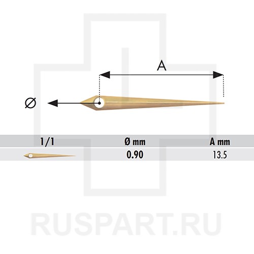 МИНУТНАЯ СТРЕЛКА В ВИДЕ КИНЖАЛА ДЛЯ СТАРЫХ ЧАСОВ, РОЗОВАЯ / 0,90 x L13,5 мм / 10шт. HOROTEC MSA45.125