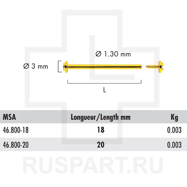 ЖЕЛТЫЙ ВИНТОВОЙ ШТИФТ, ЛАТУНЬ / 1,30 x L20 мм / 10 ШТ. HOROTEC MSA46.800-20