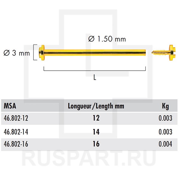 ВИНТОВАЯ ШПИЛЬКА, ЖЕЛТАЯ ЛАТУНЬ / 1,50 x L14 мм / 10 ШТ. HOROTEC MSA46.802-14