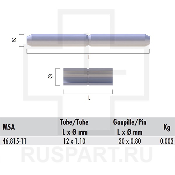 ВТУЛКА L12/1,10 мм + ШТИФТ L30/0,80 мм С ЦЕНТРАЛЬНЫМ ВЫРЕЗОМ, НЕРЖАВЕЮЩАЯ СТАЛЬ / 10 ШТ. HOROTEC MSA46.815-11