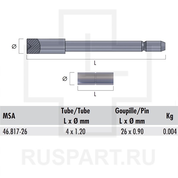 ВТУЛКА L4/1,20 мм + ШТИФТ L26/0,90 мм С БОКОВЫМ ВЫРЕЗОМ, НЕРЖАВЕЮЩАЯ СТАЛЬ / 10 ШТ. HOROTEC MSA46.817-26