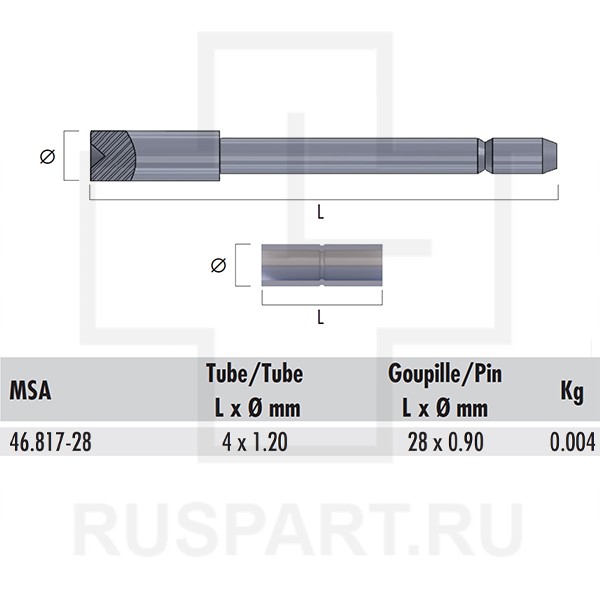 ВТУЛКА L4/1,20 мм + ШТИФТ L28/0,90 мм С БОКОВЫМ ВЫРЕЗОМ, НЕРЖАВЕЮЩАЯ СТАЛЬ / 10 ШТ. HOROTEC MSA46.817-28