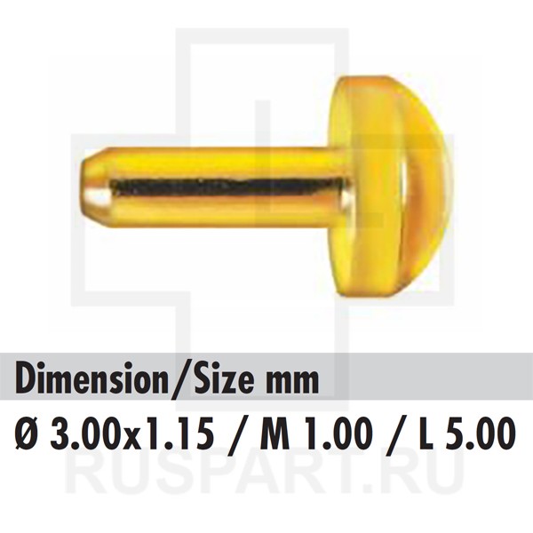 ЖЕЛТАЯ ЛАТУННАЯ ЗАКЛЕПКА ДЛЯ ЗАПРЕССОВАННЫХ СТЕРЖНЕЙ, 3,00x1,15 / M 1,00 / L 5,00 мм HOROTEC MSA46.921