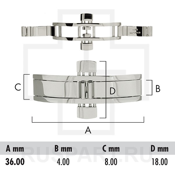 FOLDING CLASP WITH PUSH BUTTONS, STAINLESS STEEL / A 36 - B 4 - C 8 - D 18 mm