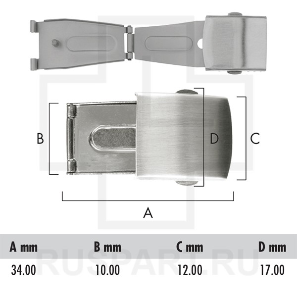 FOLDING CLASP WITH PUSH BUTTONS, STAINLESS STEEL / A 34 - B 10 - C 12 - D 17 mm /