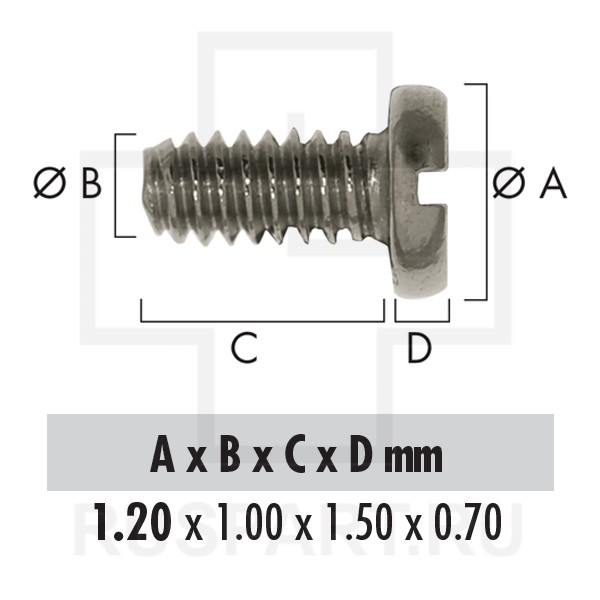 Цена за НАБОР SCREW FOR CASE BACKS, FLAT HEAD 1.20/ THR. 1.00/ L. 1.50 mm/ 10 PIECES