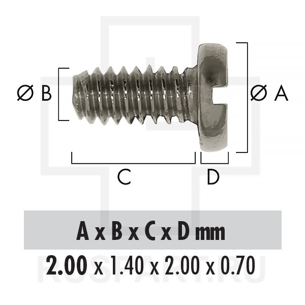 Цена за НАБОР SCREW FOR CASE BACKS, FLAT HEAD 2.00/ THR. 1.40/ L. 2.00 mm/ 10 PIECES