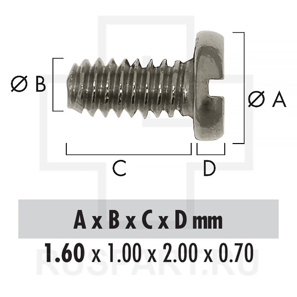 Цена за НАБОР SCREW FOR CASE BACKS, PHILLIPS HEAD 1.60/ THR. 1.00/ L. 2.00 mm/ 10 PIECES