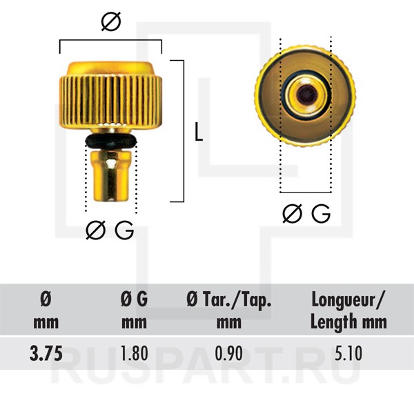 ГОЛОВКА ДЛЯ ЯПОНСКИХ ЧАСОВ (506-3814), НЕРЖАВЕЮЩАЯ СТАЛЬ / ЖЕЛТАЯ / 3,75 /G 1,80 /TAP. 0,90 / HOROTEC MSA81.009