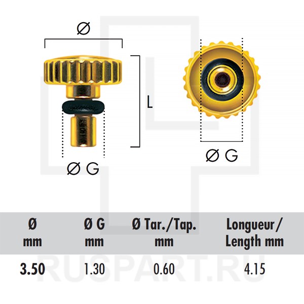 ГОЛОВКА ДЛЯ ЯПОНСКИХ ЧАСОВ (38-0225NGP), НЕРЖАВЕЮЩАЯ СТАЛЬ / ЖЕЛТАЯ / 3,50 /G 1,30 /TAP. 0,60 / HOROTEC MSA81.111