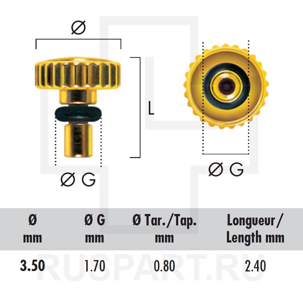 ГОЛОВКА ДЛЯ ЯПОНСКИХ ЧАСОВ (38-0157NGP), НЕРЖАВЕЮЩАЯ СТАЛЬ / ЖЕЛТАЯ / 3,50 /G 1,70 /TAP. 0,80 / HOROTEC MSA81.113
