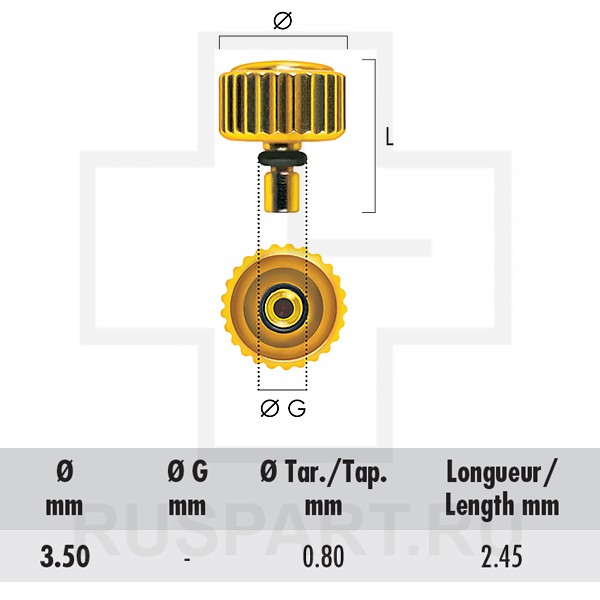 ГОЛОВКА ДЛЯ ЯПОНСКИХ ЧАСОВ (35E09NN1), НЕРЖАВЕЮЩАЯ СТАЛЬ / ЖЕЛТАЯ / 3,50 /TAP. 0,80/Д2,45 мм HOROTEC MSA81.213