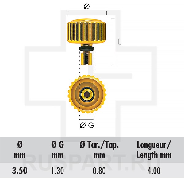 ГОЛОВКА ДЛЯ ЯПОНСКИХ ЧАСОВ (8M35A0BNG1), НЕРЖАВЕЮЩАЯ СТАЛЬ / ЖЕЛТАЯ / 3,50 /G 1,30 /TAP. 0,80 / HOROTEC MSA81.259