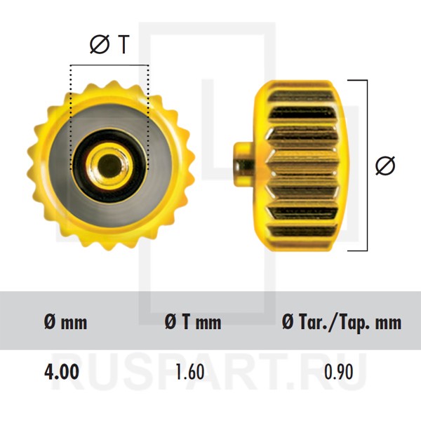 Водонепроницаемая головка с коротким футором / нержавеющая сталь / желтая / 4,00 /T 1,60 / TAP. 0,90