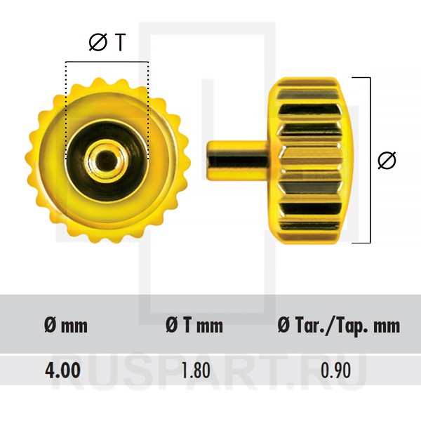 Водонепроницаемая головка с длинным футором, нержавеющая сталь / желтая / 4.00 /T 1,80 / TAP. 0,90