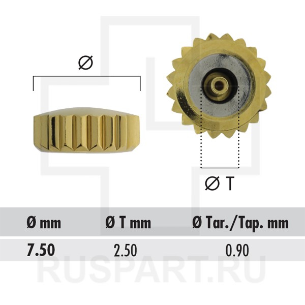 Водонепроницаемая головка с длинным футором, нержавеющая сталь / желтая / 7.50 / T 2.50/ TAP. 0,90