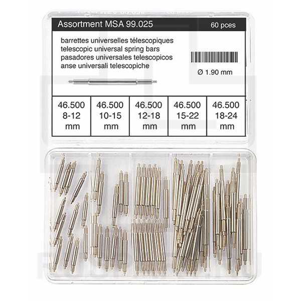 ASSORTMENT OF UNIVERSAL TELESCOPIC SPRING BARS, NICKEL SILVER / 1.90 mm / 60