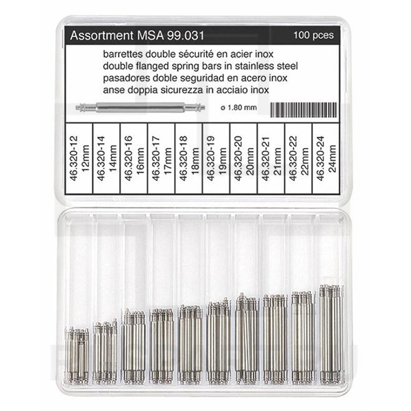 ASSORTMENT OF DOUBLE FLANGED SPRING BARS, STAINLESS STEEL / 1.80 mm / 100