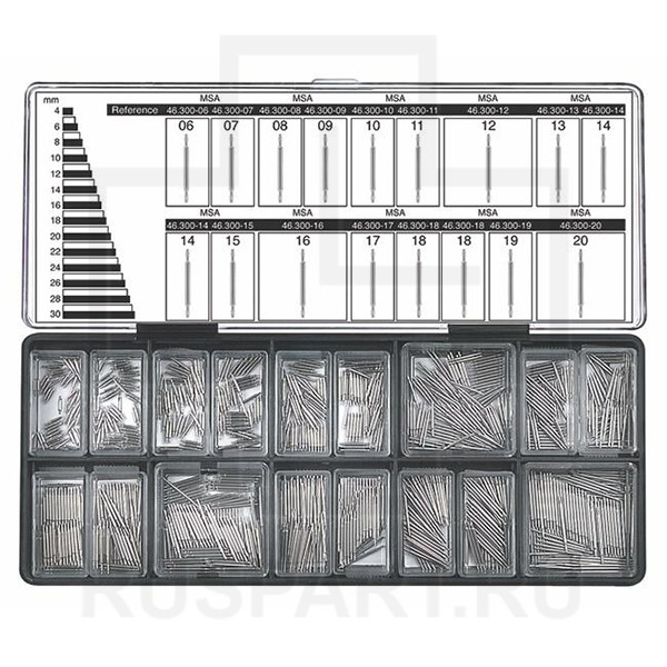 ASSORTMENT OF DOUBLE FLANGED SPRING BARS, STAINLESS STEEL / 1.30 mm / 1000